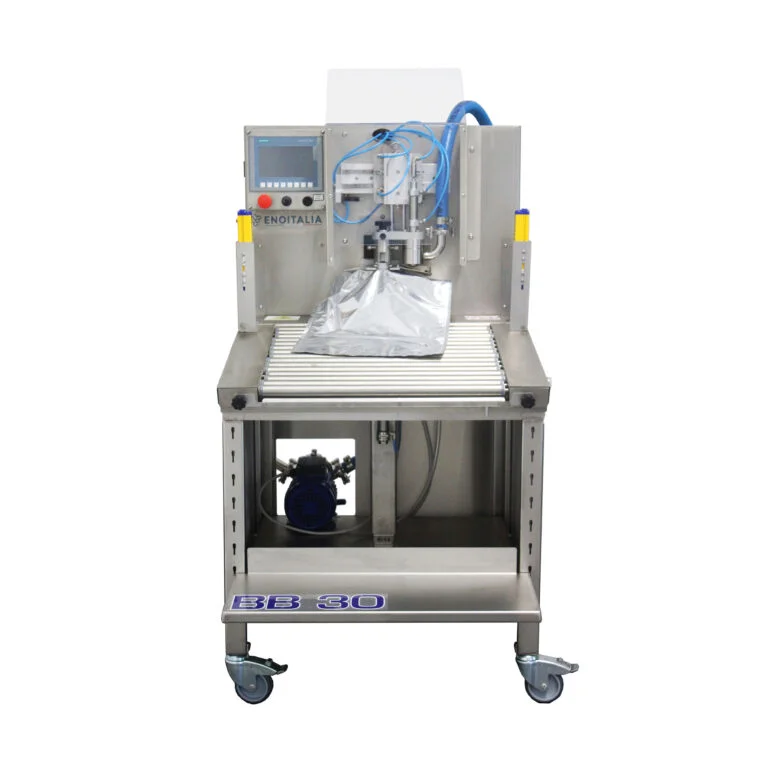 Plniaci cyklus je úplne automatický: stroj vykonáva všetky operácie otvárania, zatvárania, vákua, saturácie inertným plynom a plnenia. Vo vákuu obsluha jednoducho umiestni vrecko a monitoruje rôzne operácie.