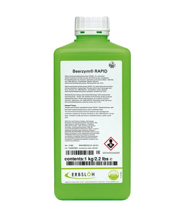 Beerzym® Rapid je špeciálny enzým, ktorý zabraňuje tvorbe diacetylu počas fermentácie a skladovania. Hlavná enzymatická