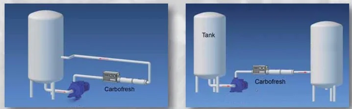 1. Systém sýtenia cirkuláciou v tlakovom tanku. 2 Systém sýtenia do tlakového tanku