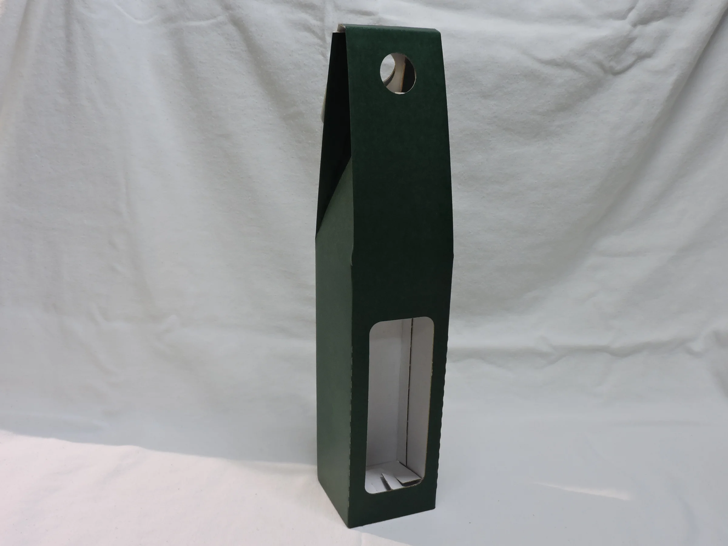 Obaľ na 1fl vína z trojvrstvovej vlnitej lepenky zelenej farby.
