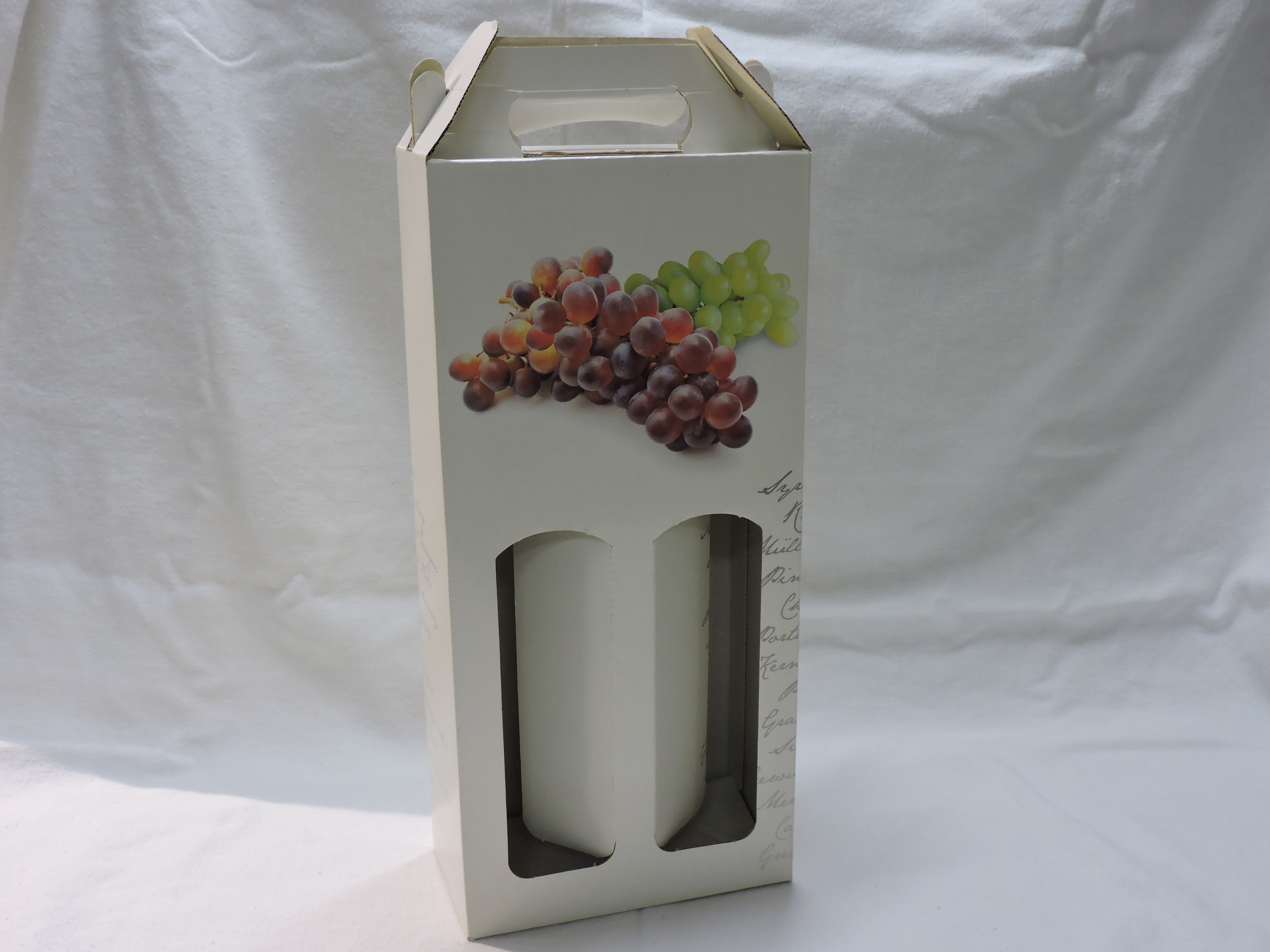 Kartón na 2fl vína s okienkom a potlačou hrozna.