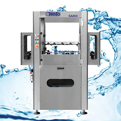 Trieda SA: Lineárny automatický oplachovací stroj s automatickým nakladaním a vykladaním fliaš pracuje so systémom jednorazového vstrekovania vody. Tento stroj je navrhnutý tak, aby oplachoval vnútro nových fliaš predfiltrovanou vodou pred ich naplnením bez toho, aby sa zvlhčila vonkajšia strana. Voda sa filtruje pomocou filtračnej patróny z nehrdzavejúcej ocele Aisi316 s jemnosťou 60 µm. K dispozícii vo verzii s ventilátorom a s recirkulačným systémom. Výkon 800, alebo 1 500 fliaš/hodina. Napájanie 220 V.