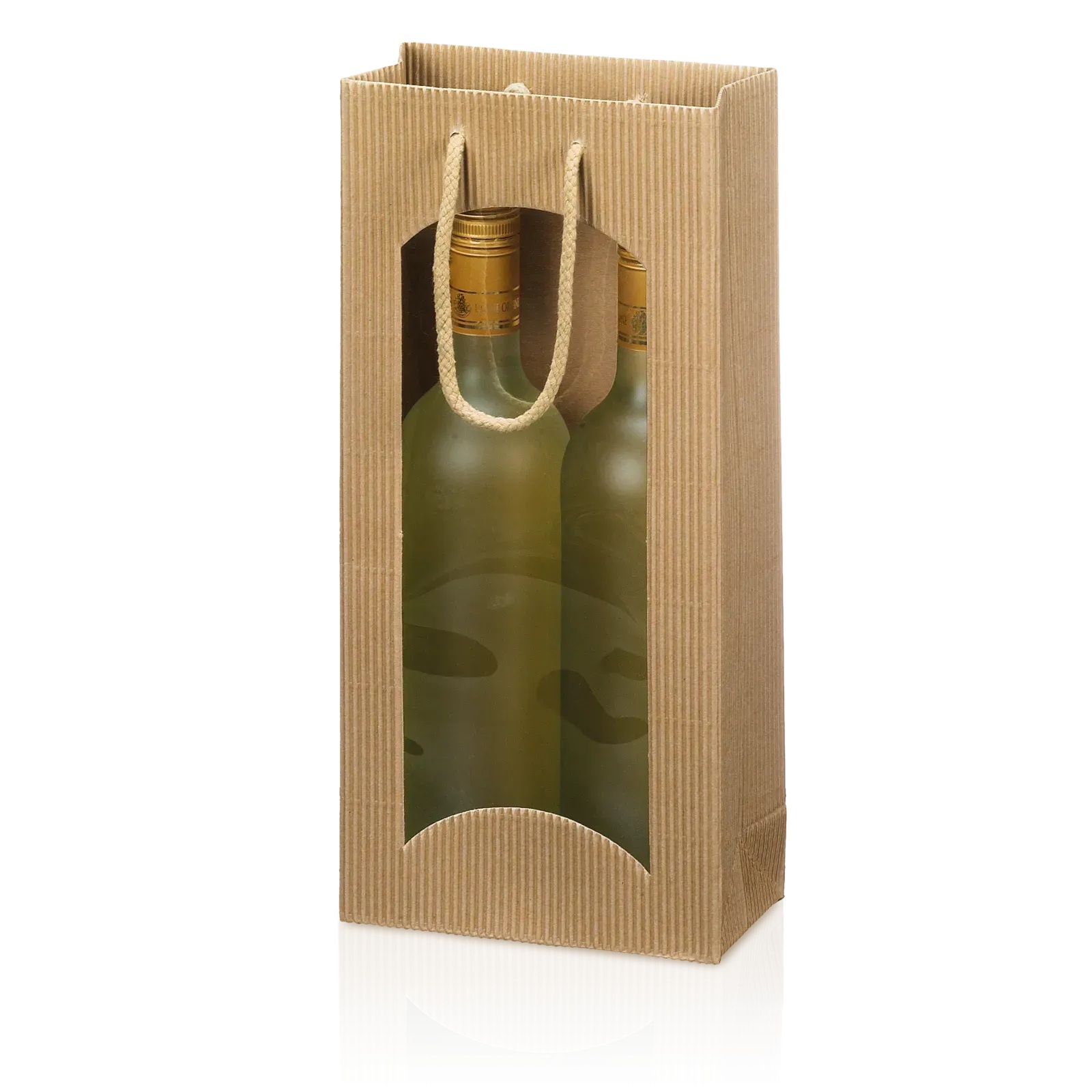 Ozdobná taška na 2fl prírodná farba s okienkom. Povrch tašky je vrúbkovaný.