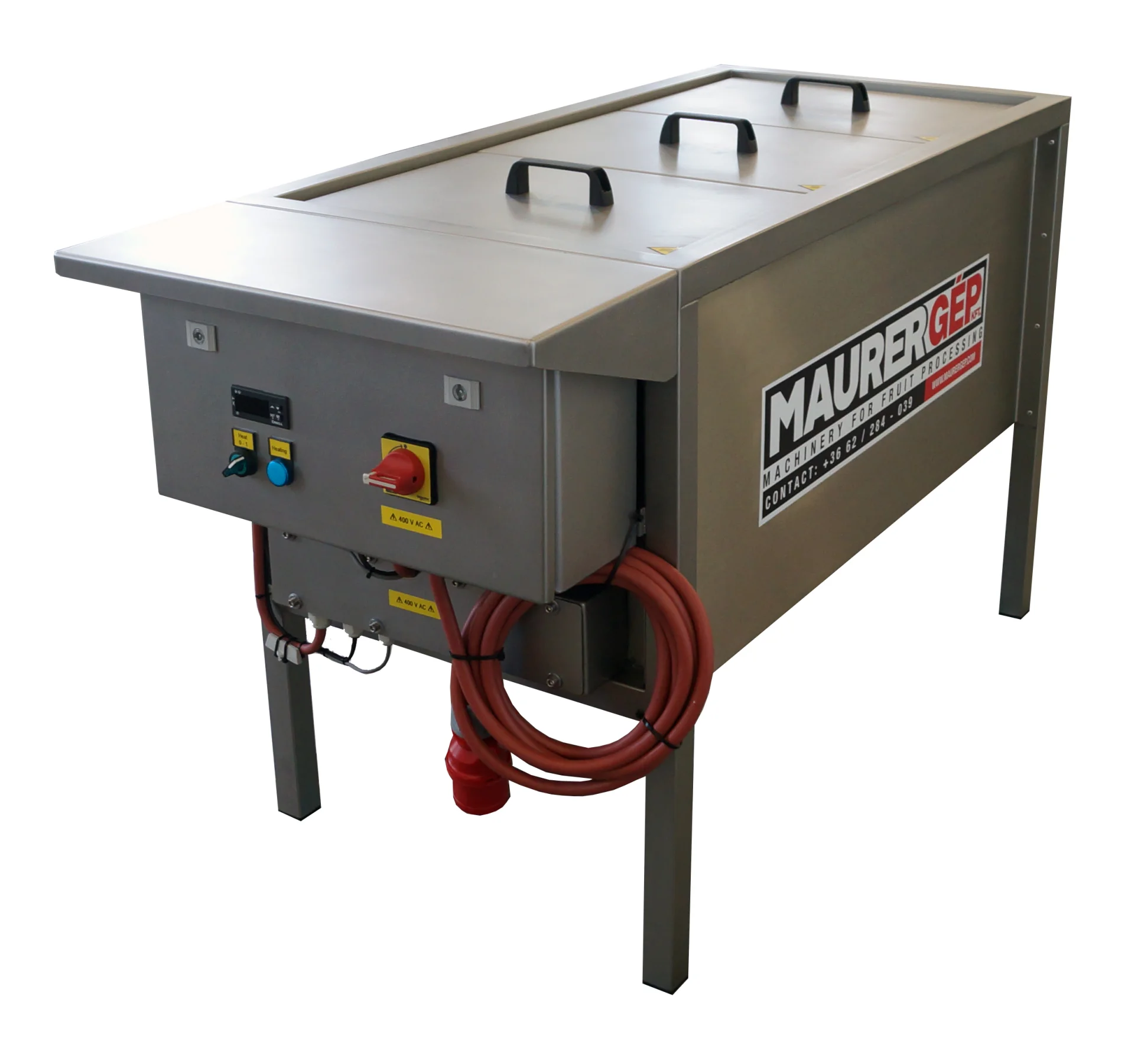 S pasterizátorom v nádobe môžete pasterizovať rôzne produkty, ako sú džemy, džúsy, smotana a ďalšie. Voda sa ohrieva dvoma vykurovacími telesami, fľaše sa vkladajú do nerezových košov a zohrievajú na požadovanú teplotu. Regulácia teploty je plne automatická a systém sa automaticky vypne, keď sa dosiahne nastavená teplota.