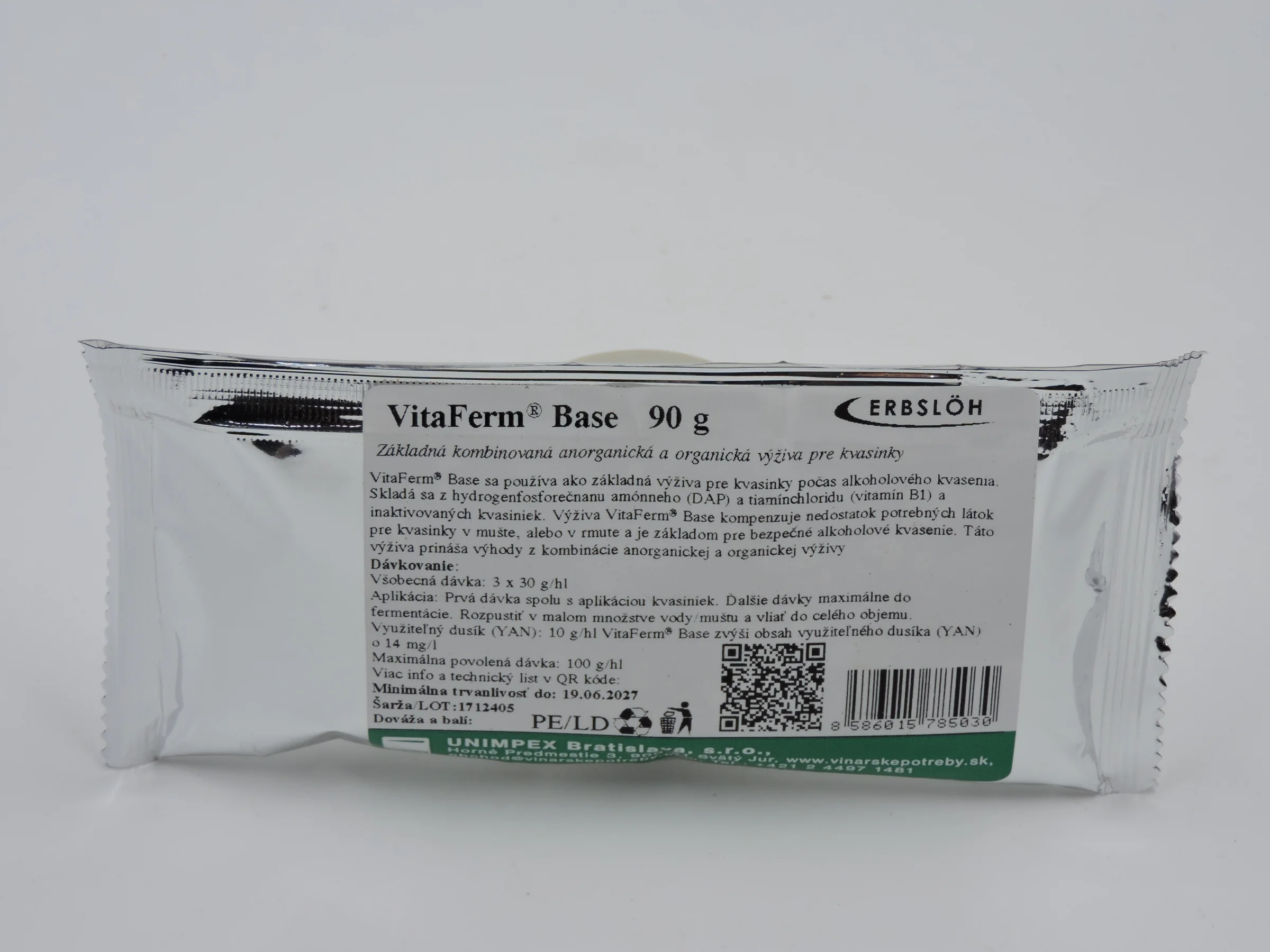 VitaFerm® Base sa používa ako základná výživa pre kvasinky počas alkoholového kvasenia. Okrem základných živín hydrogenfosforečnanu amónneho (DAP) a tiamínchloridu (vitamín B1) poskytuje cenné látky z inaktivovaných kvasiniek. Výživa VitaFerm® Base kompenzuje nedostatok potrebných látok pre kvasinky v mušte, alebo v rmute a je základom pre bezpečné alkoholové kvasenie.
