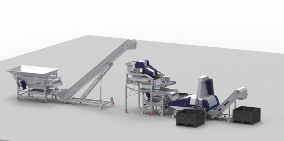 Zahŕňa vibračné stoly, dopravníky, odstopkovače a triedičky (vrátane špičkových optických triedičiek, ktoré dokážu laserom vyselektovať len dokonalé bobule).