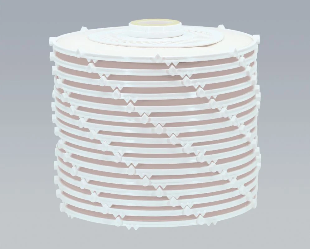 Zloženie: Kruhové segmenty filtračných dosiek (rôznych radov) naskladané do podoby uzavretého modulu (tzv. lentikulárne moduly).